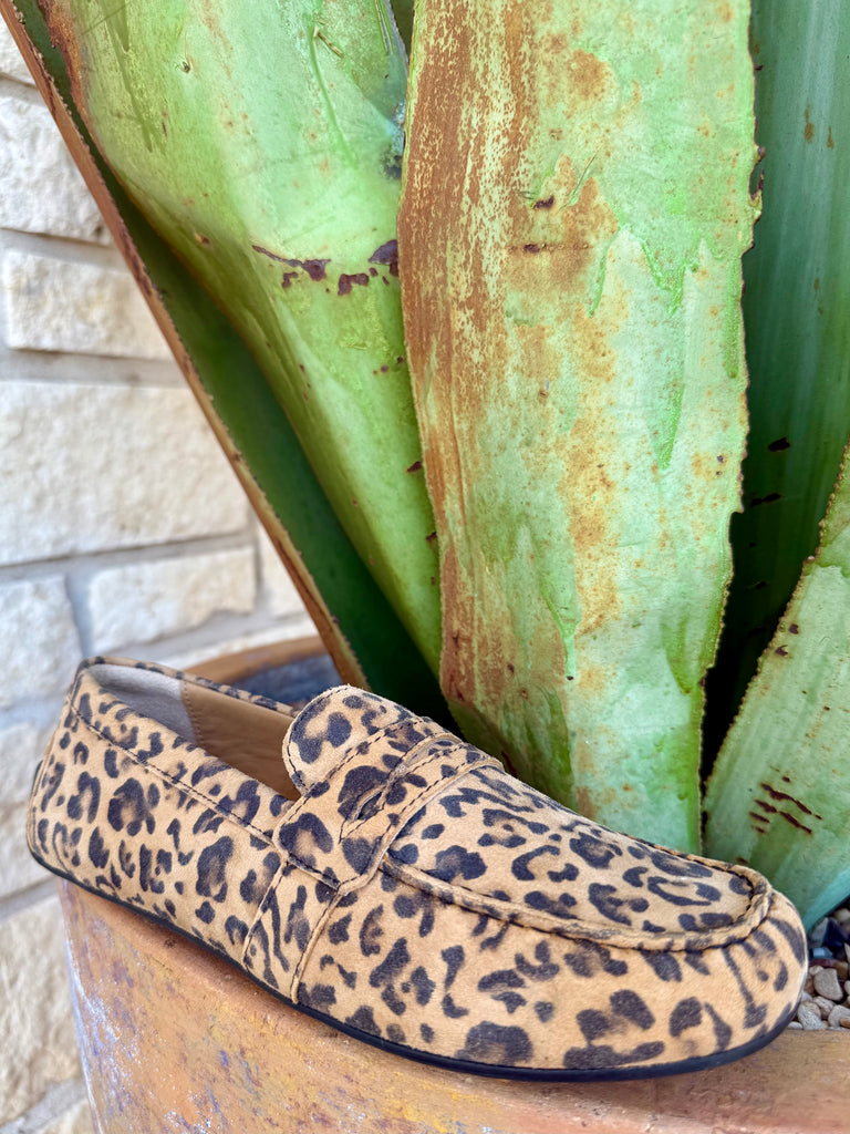 Crafted from soft cheetah-print suede that feels gentle on the foot and adds an eye-catching look that pairs easily with casual outfits.