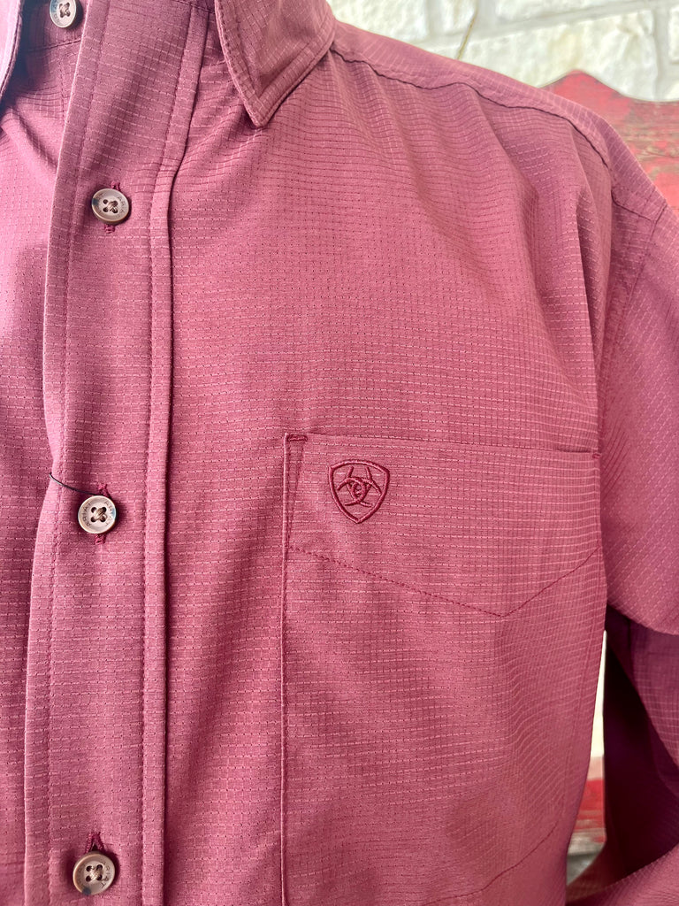 Men's Ariat Western Shirt Red Mahogany Button-Down with 360 AirFlow™ technology and breathable mesh yoke – 10054884. Available at Blair's Western Wear, Marble Falls, TX.