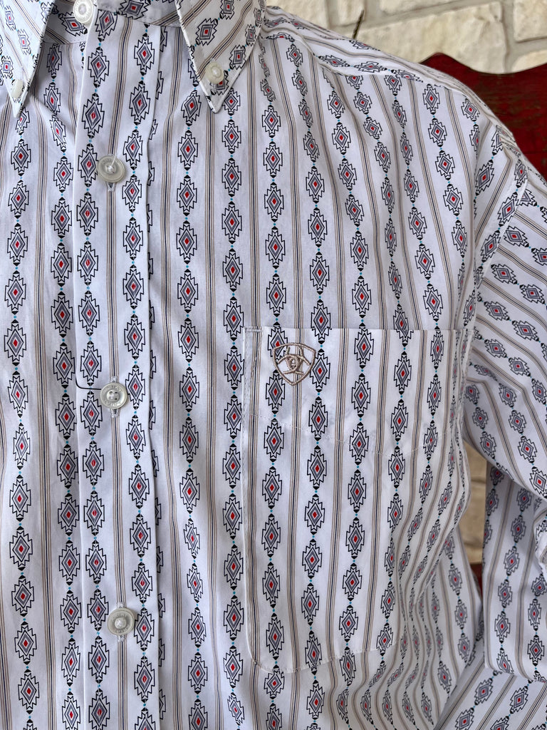 Men's Ariat Western Shirt White Aztec Print – 10058763