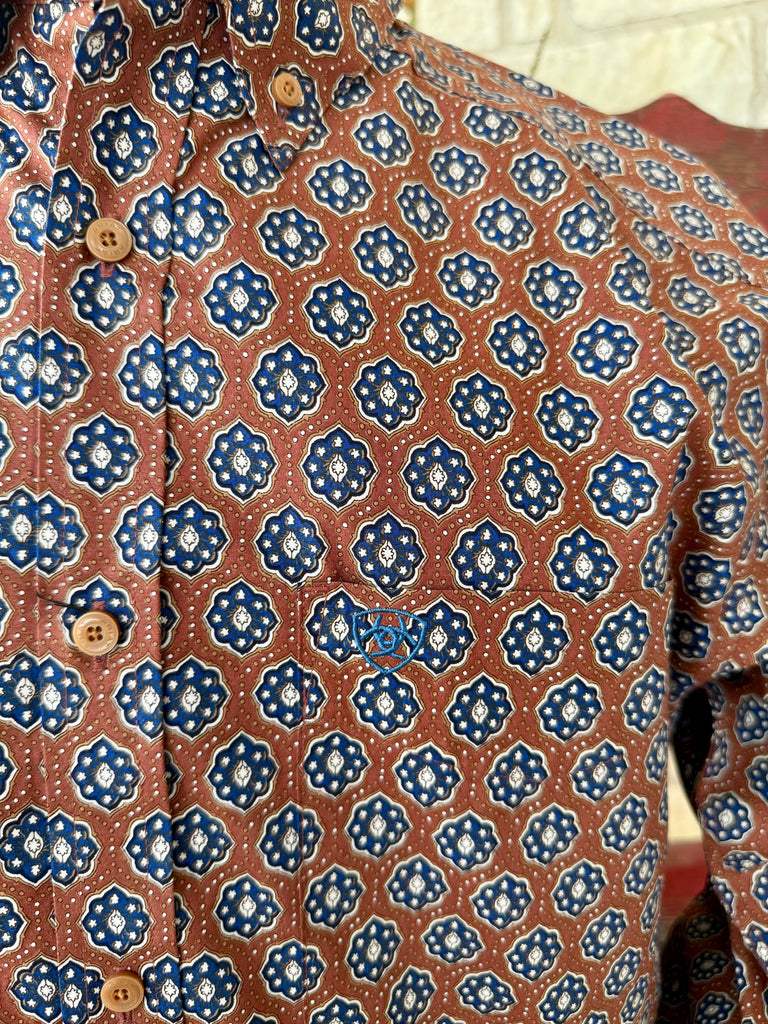 Men’s Ariat Long Sleeve Button-Down Print Shirt Rust/Blue - 10062239