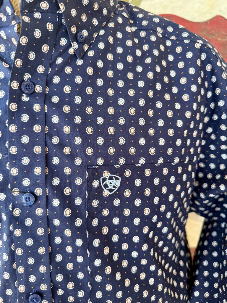 Men’s Ariat Long Sleeve Button-Down Print Shirt Navy/Tan – 10062241
