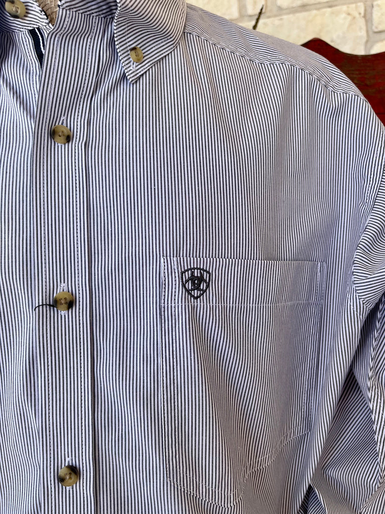Men's Ariat Long Sleeve Button-Down Shirt - White/Navy Stripe - 10055268