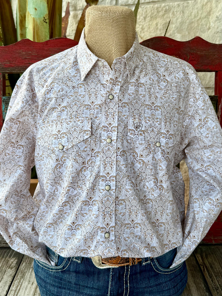 Men’s Ariat Long Sleeve Snap Print Shirt in Tan/Gray - 10058758