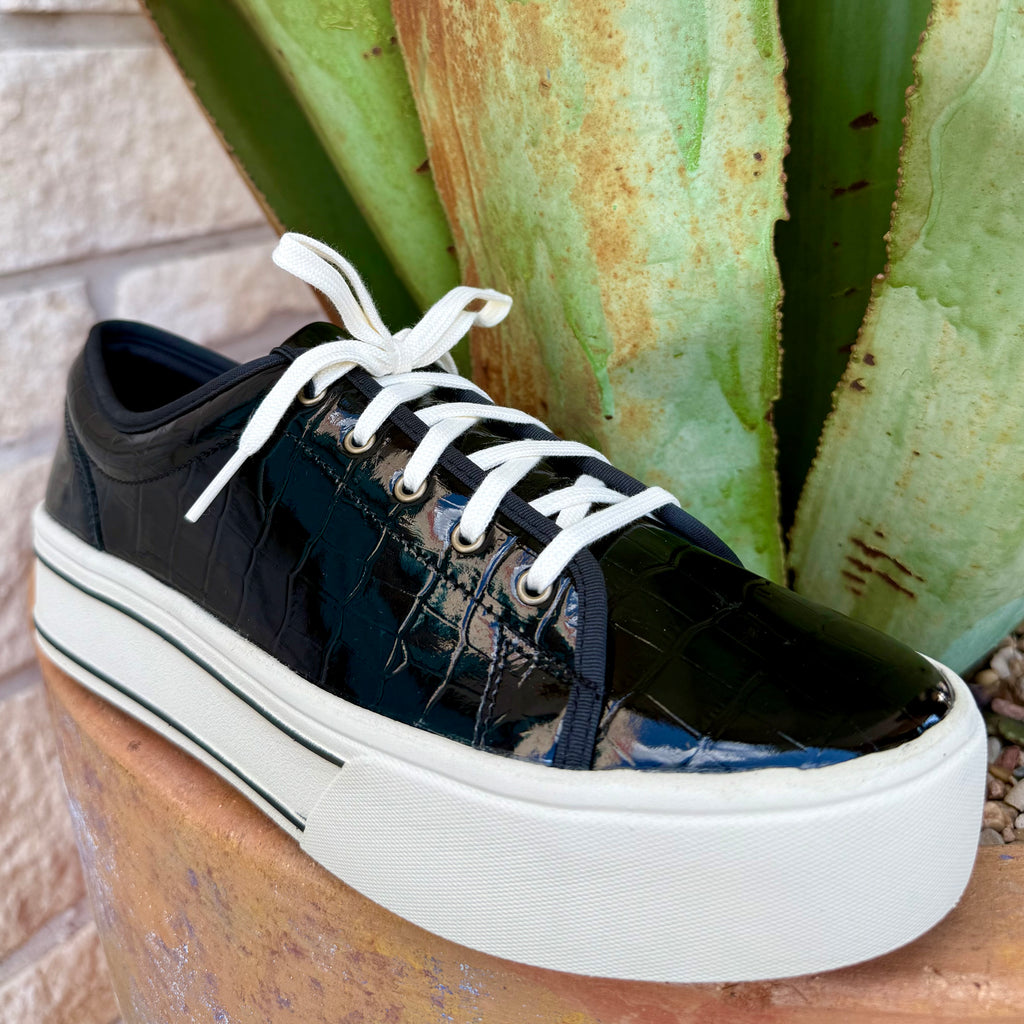 Crafted from premium croc-embossed leather for a glossy, elevated finish that adds texture and depth to any outfit.