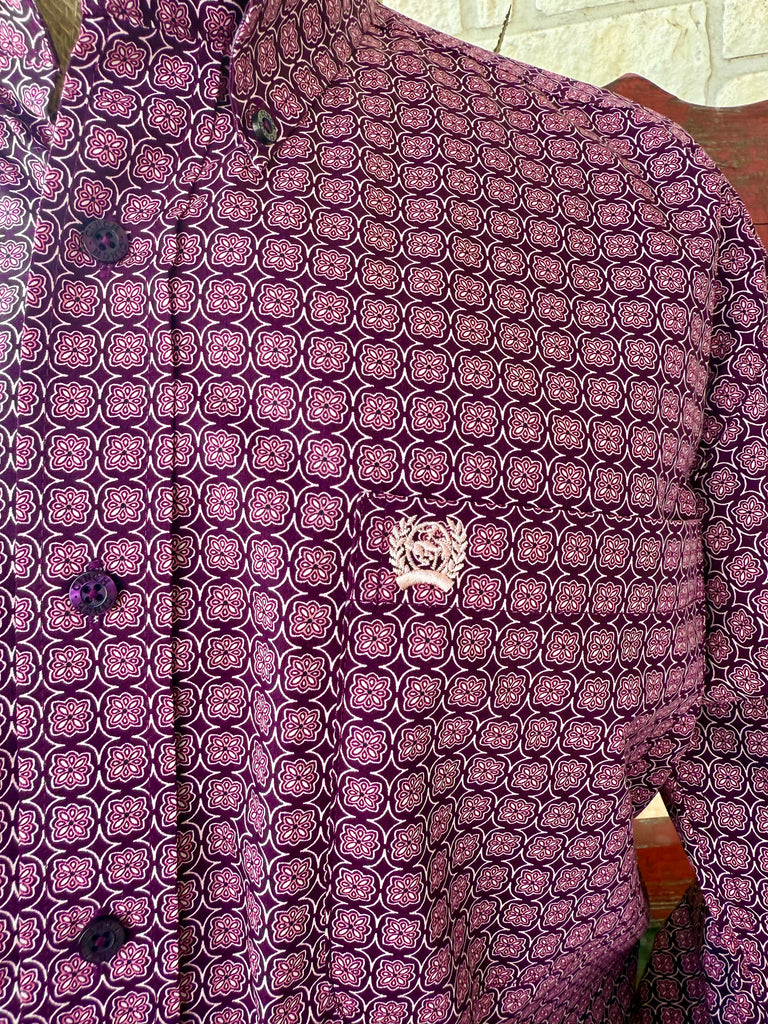 Men’s Cinch Long Sleeve Button-Down Print Shirt Plum/Lavender - MTW1105922