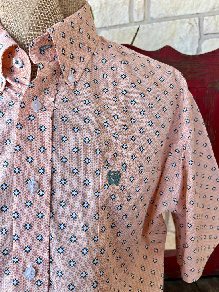 Men's CINCH Short Sleeve Pink Printed Button-Down Shirt - MTW1111473