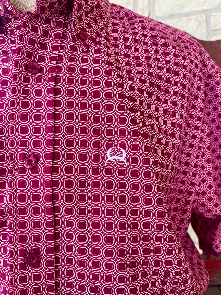 Men’s CINCH Western Short Sleeve Button-Down Shirt - Raspberry Print - MTW1704151