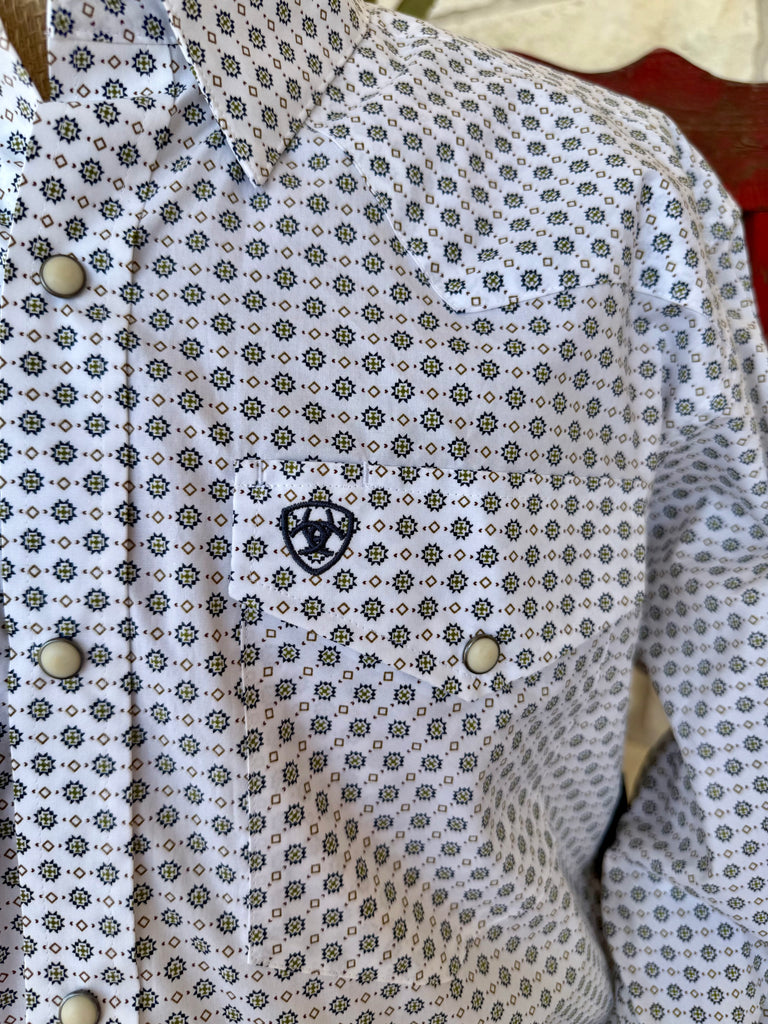 Men’s Ariat Western Shirt White/Navy/Tan Print - 10065784