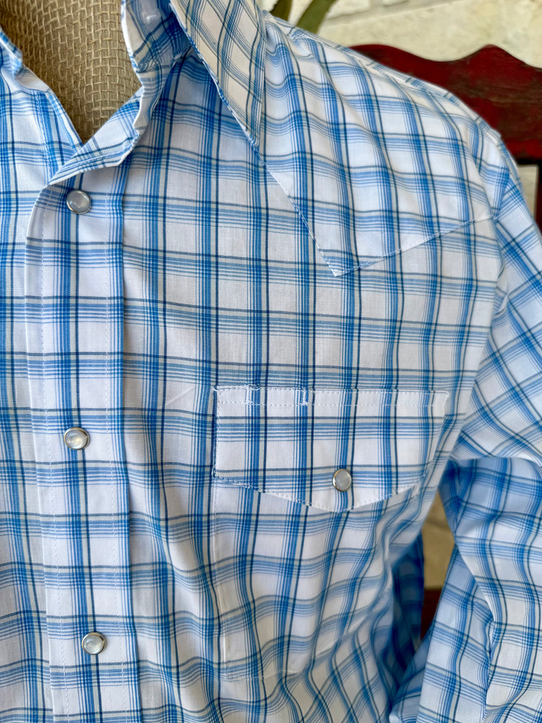 Men’s Wrangler Long Sleeve Snap Plaid Shirt White/Blue – 112369448