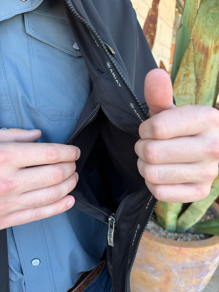 Constructed from durable stretch softshell fabric that blocks wind and light rain for all-day comfort.