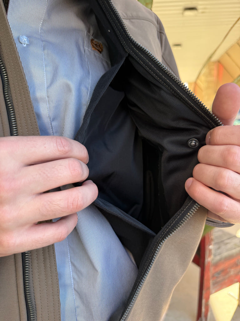 • Dual concealed carry pockets with hook-and-loop holster system for secure and discreet firearm access.