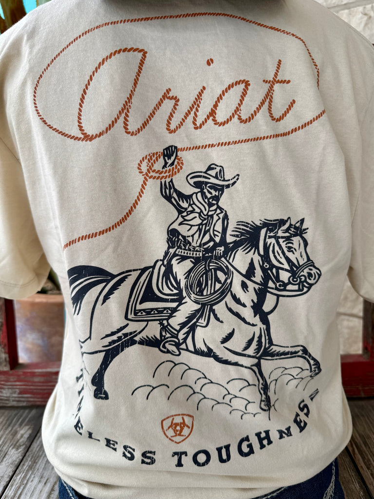 • Bold back graphic featuring a roper and “Timeless Toughness,” giving the shirt a classic Western look that stands out.