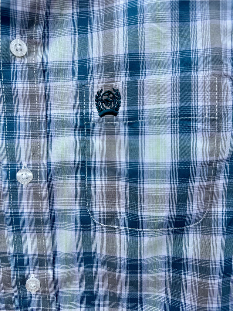 Single Open Left Chest Pocket with Embroidered Cinch Logo: Offers convenient storage and a touch of Western flair