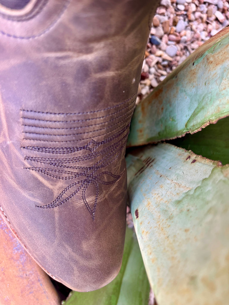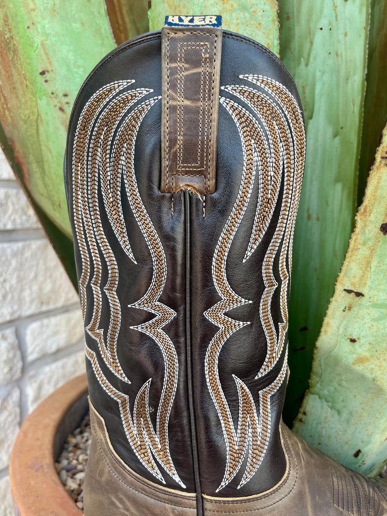 Men's Hyer Western Boots Cutter Toe Leather Boot in Brown, premium distressed leather foot resists scuffs, with bold multi-row stitched shaft for standout style - HM12020. Available at Blair's Western Wear, Marble Falls, TX.