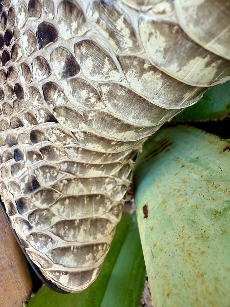 Natural snake-skin vamp that brings eye-catching texture and a unique pattern on every pair.