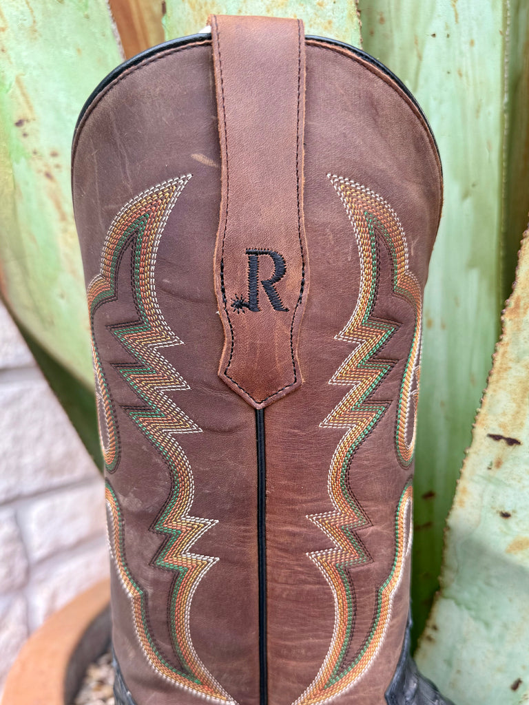 Men’s R. Watson Exotic Black Caiman Tail & Arizona Tan Cowhide Boot – RW3000-2