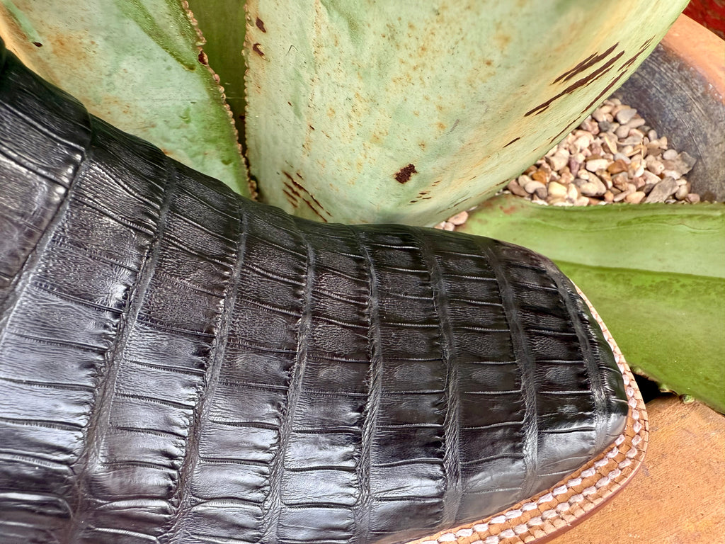 Built with genuine black caiman tail leather that offers a bold, upscale look and long-lasting durability.