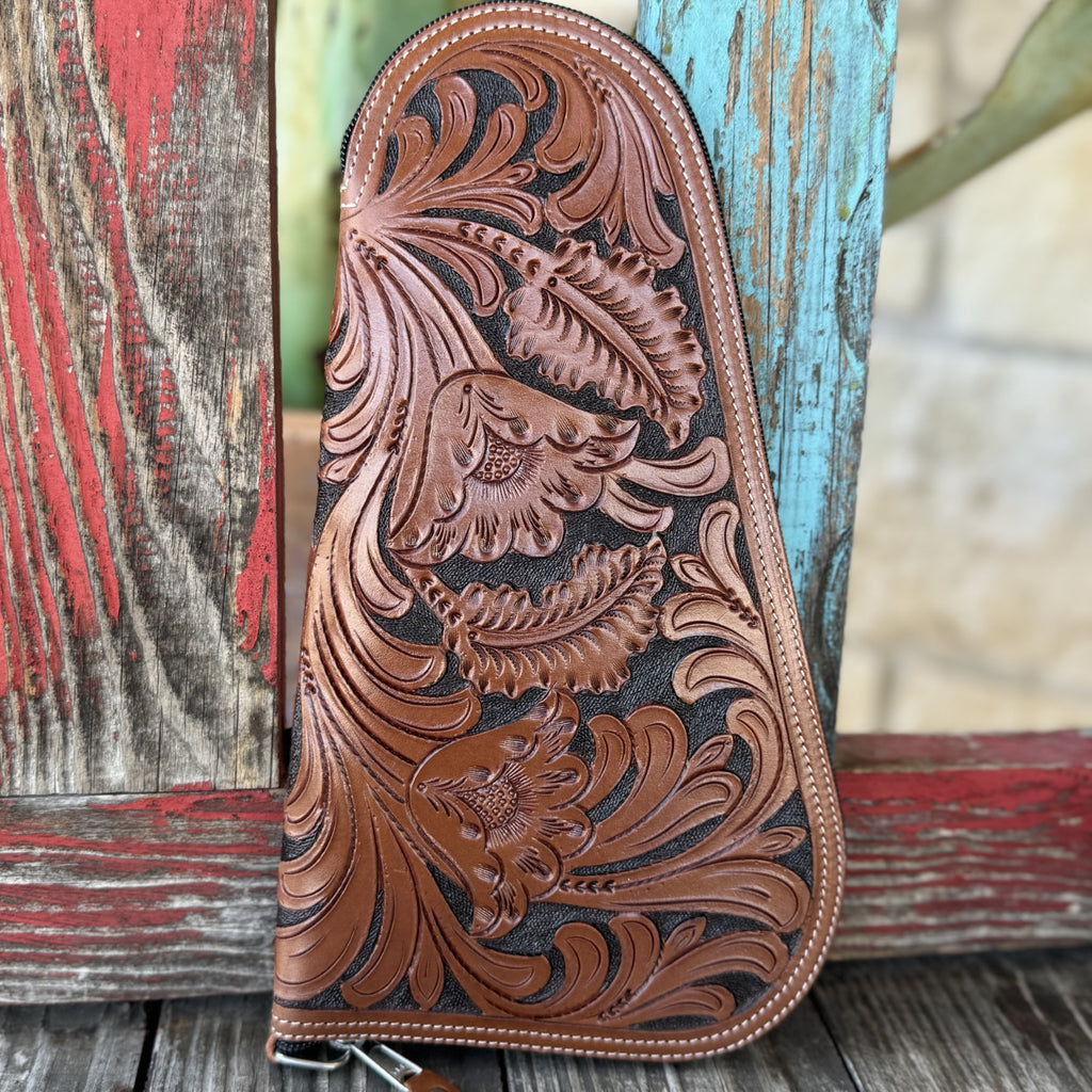 Unisex Tooled Leather Gun Case - Brown and Black - GCO3CBG