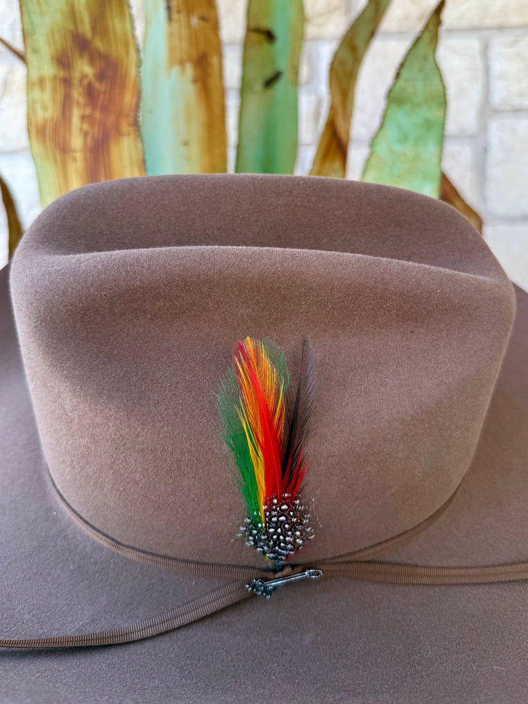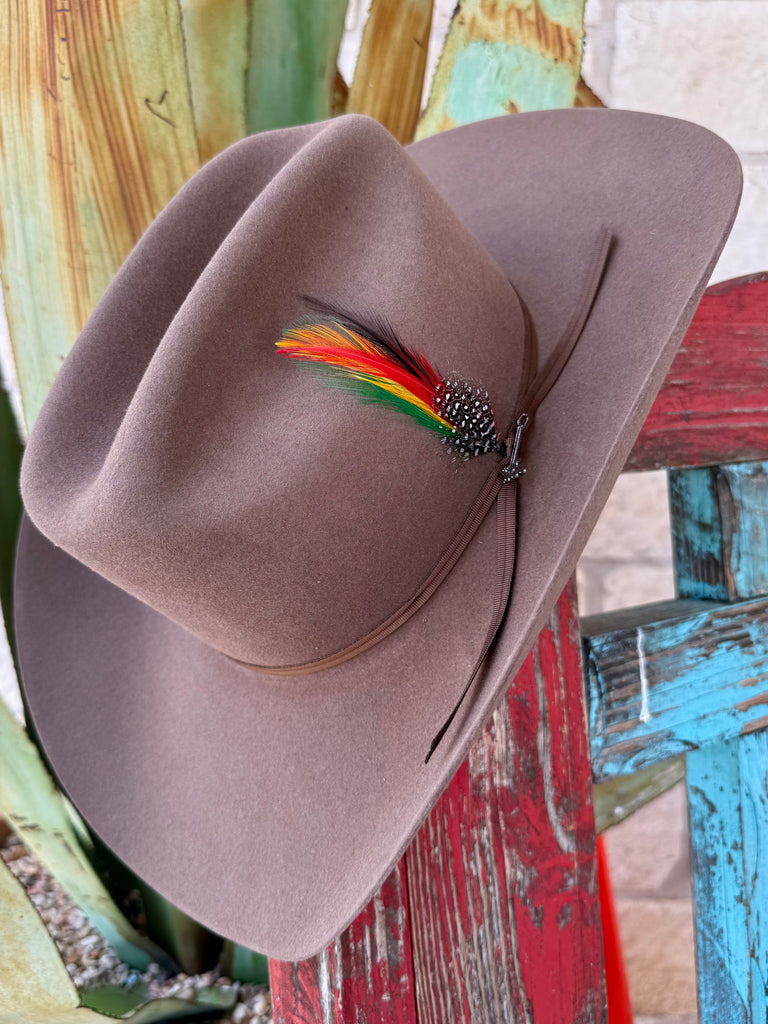 • Finished with a slim hatband and colorful feather accent for a touch of classic western flair.