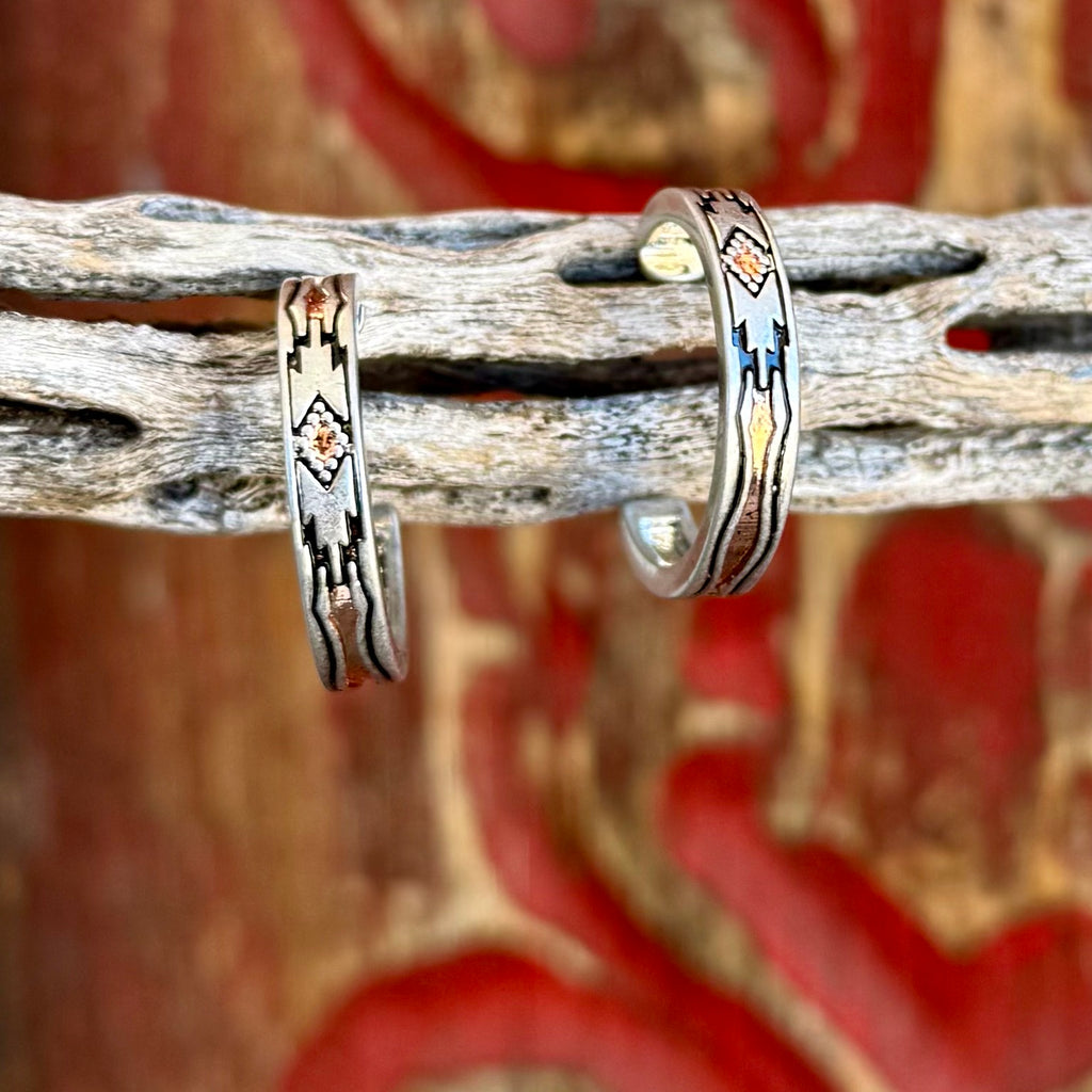 Women’s Montana Silversmiths Hoop Aztec Earrings – Silver & Copper – ER6114