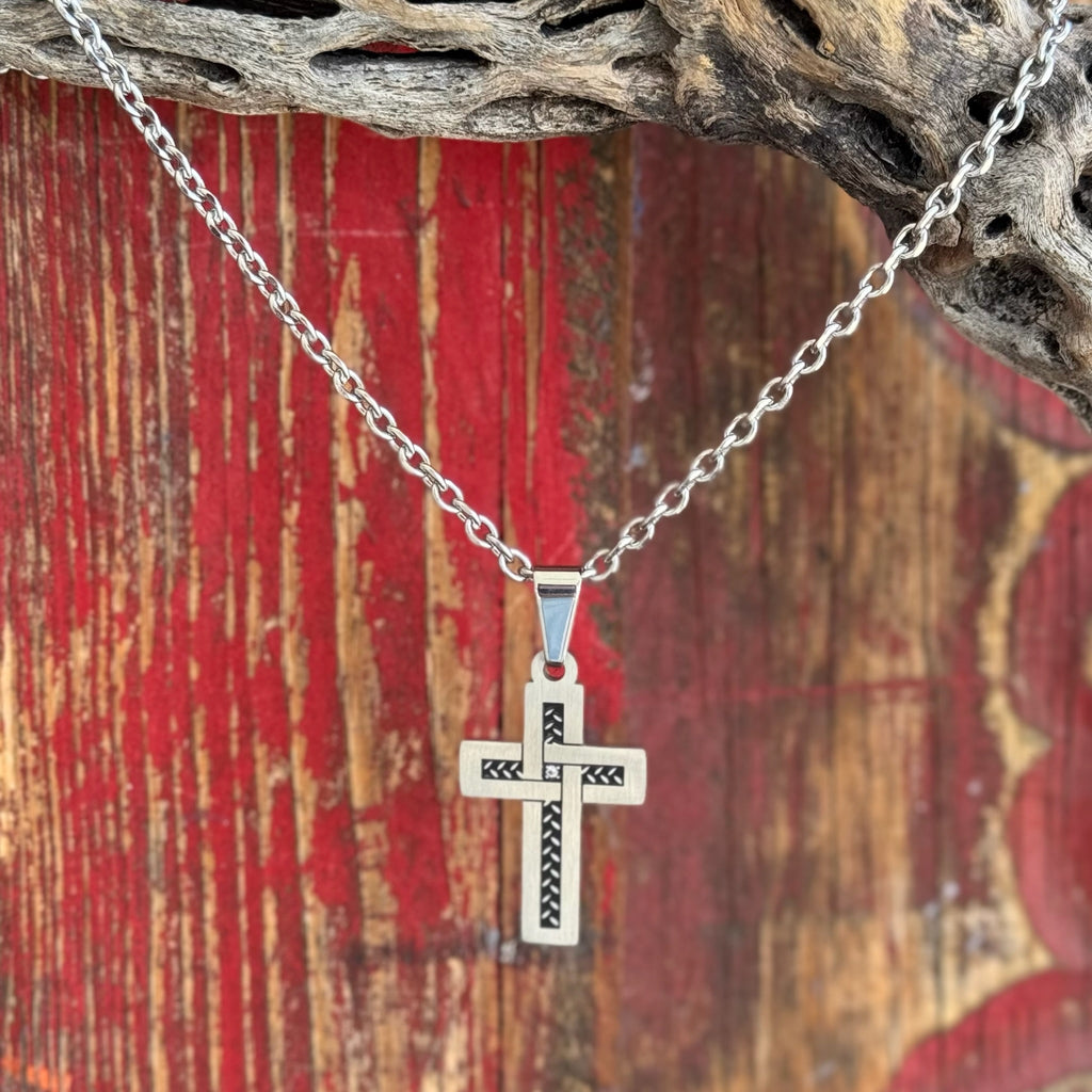 - Elegant twisted cross design featuring a silver-tone finish for a sleek, modern look.