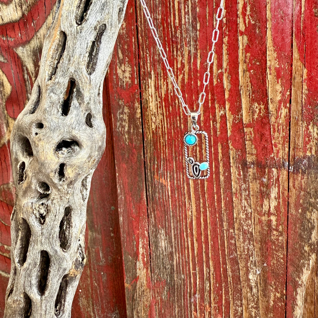 Crafted with a rectangular silver-tone pendant accented by genuine turquoise stones for a true Southwestern look.