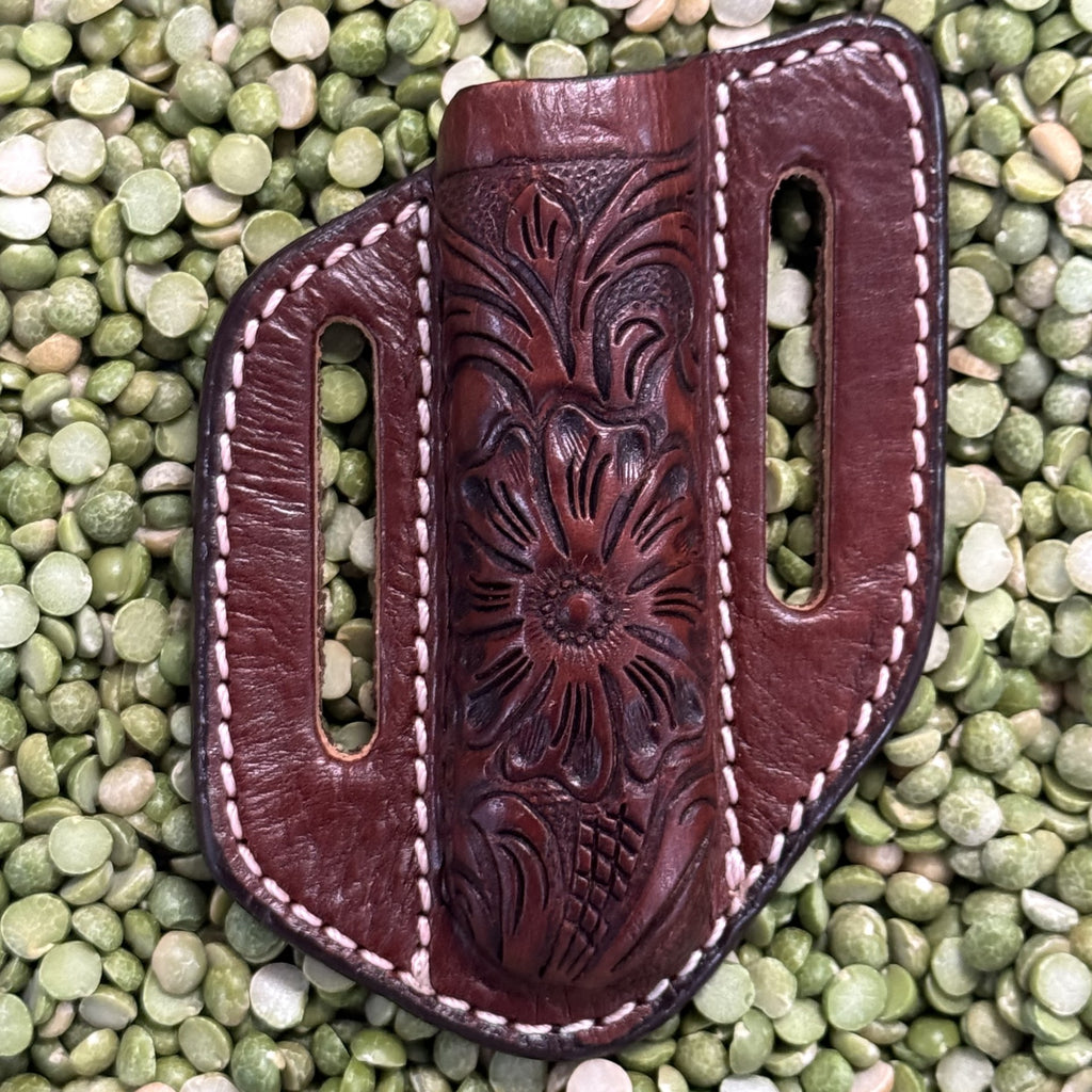 Leather Sheath Brown Tooled Knife Holder - KS128