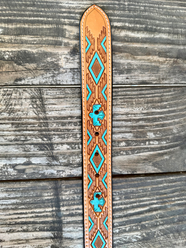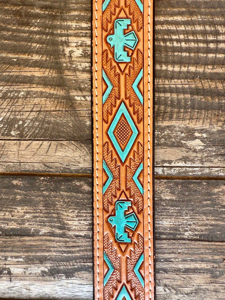 Women’s American Darling Tooled Thunderbird Leather Belt – Tan/Turquoise - ADBLF173