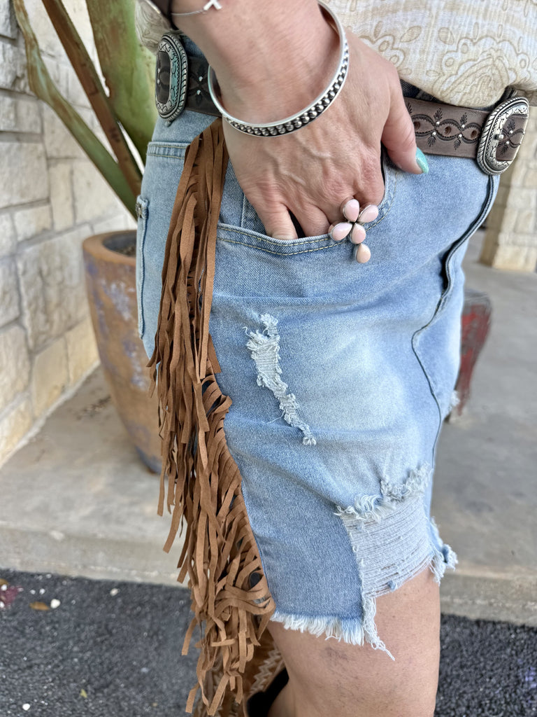 Raw frayed hem that gives the skirt a relaxed western edge and modern vibe