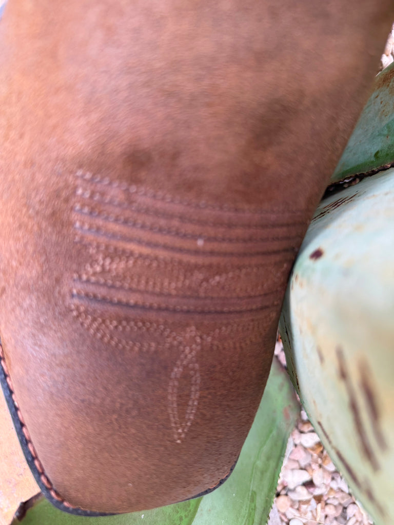 Constructed from premium brown roughout leather that resists scuffs and abrasions while developing a worn-in look over time for everyday ranch and casual wear.
