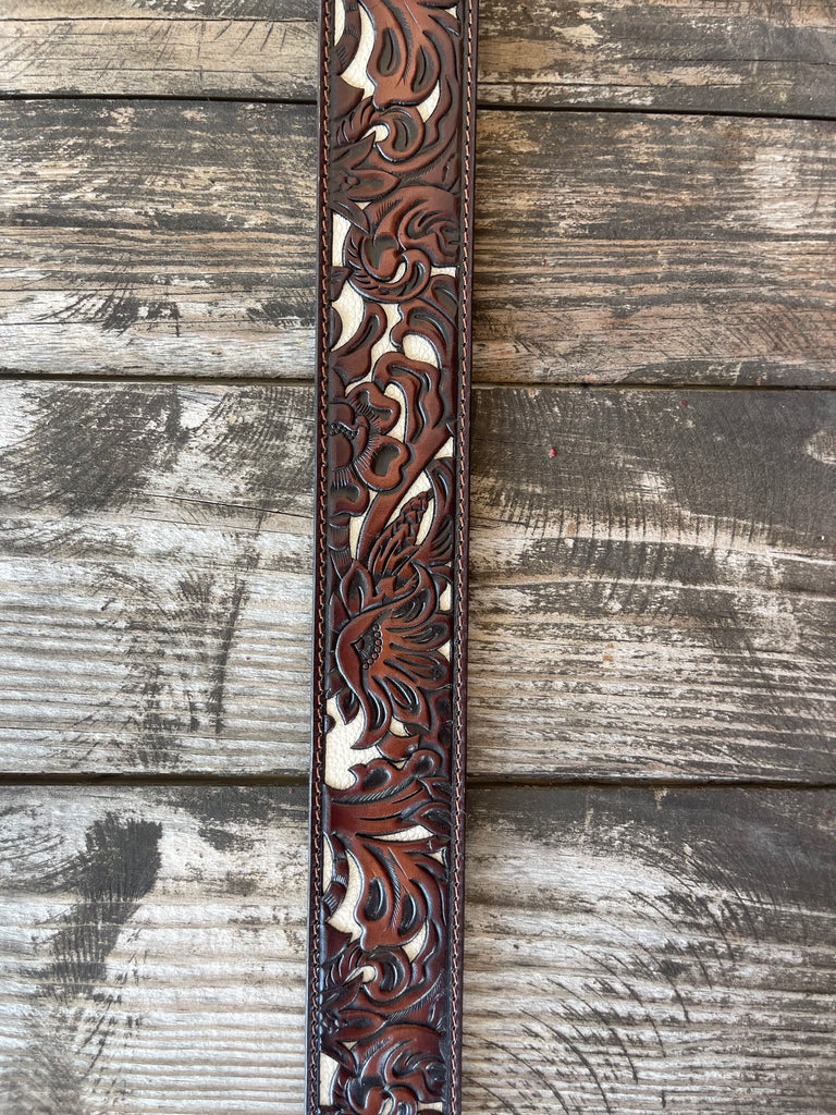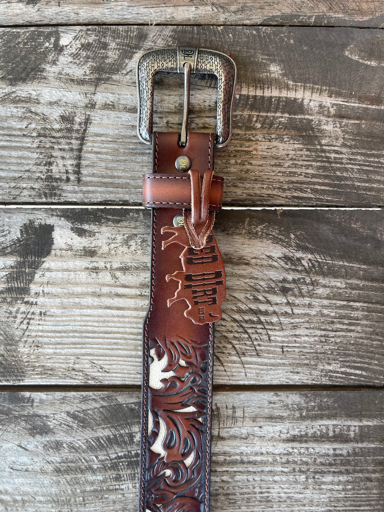 Men’s Red Dirt Hat Co. Tooled Leather Belt Chocolate/White - 24169BE1