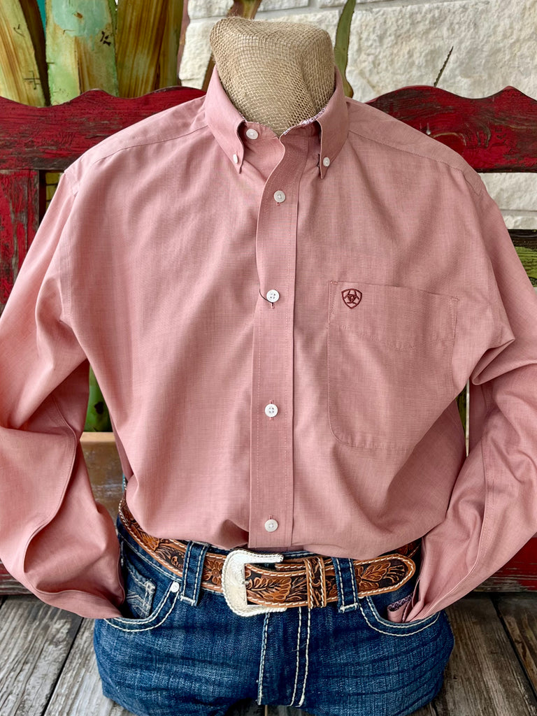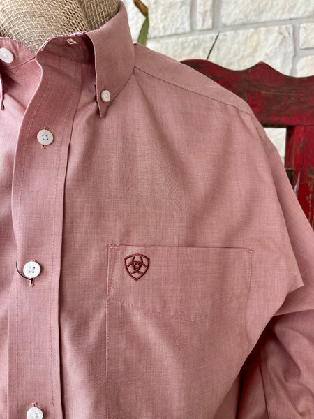Men's Ariat Long Sleeve Button-Down Heather Brick Shirt - 10055277