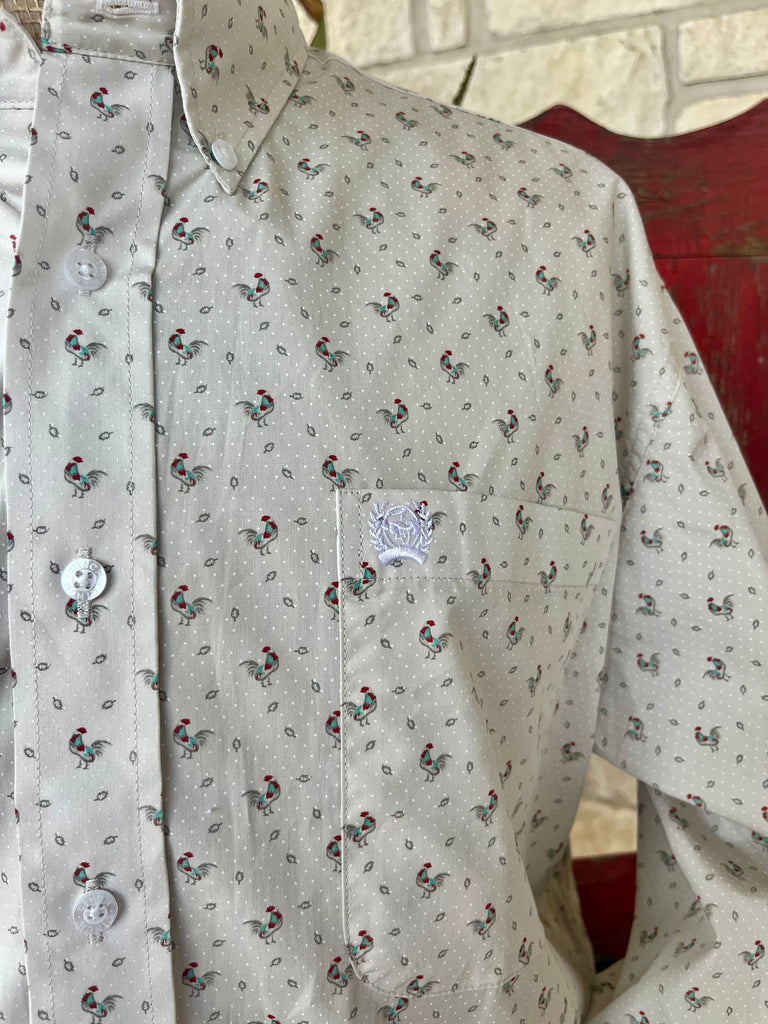 Men’s Cinch Button-Down Shirt Tan/Red/Turquoise Rooster Print - MTW1105933