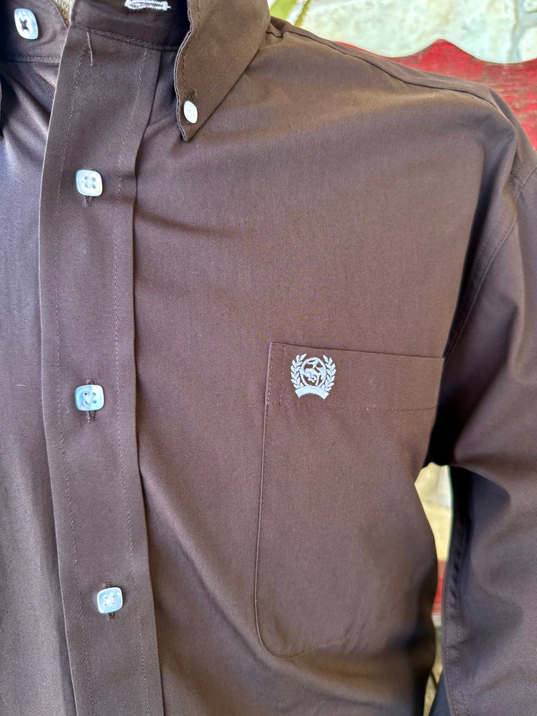 Men’s Cinch Long Sleeve Button-Down Brown Solid Shirt – MTW1104236