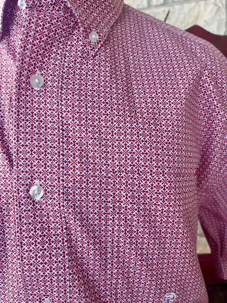 Men's Roper Short Sleeve Button-Down Printed Shirt Red/White – 3023264040