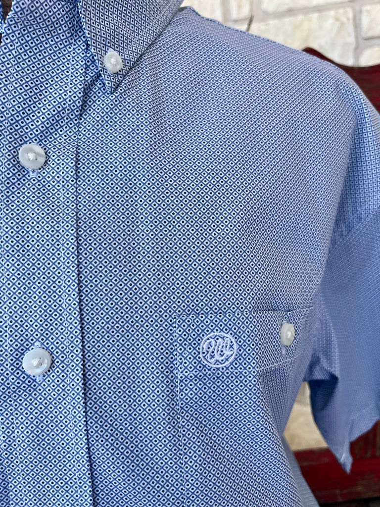 Men’s Wrangler Short Sleeve Button-Down Print Shirt Light Blue/Blue – 112365861