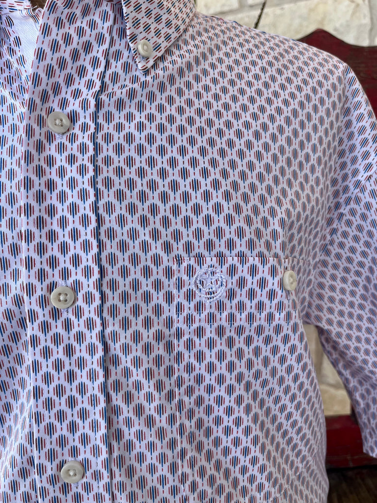 Men’s Wrangler George Strait Shirt White/Blue/Rust Print Short Sleeve Button-Down – 112365409