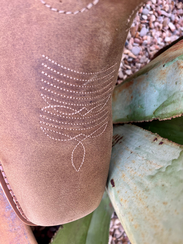 Rugged brown leather foot and black shaft with bold stitching offer a classic Western look that doesn’t sacrifice durability.