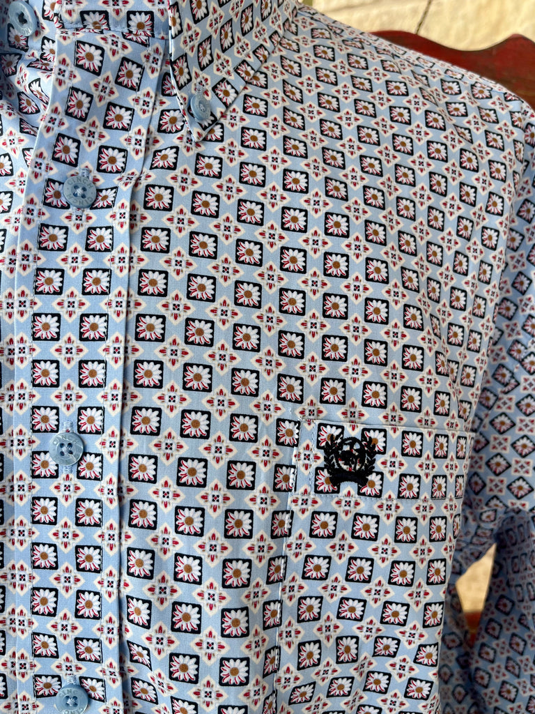 Men's CINCH Button-Down Western Shirt Light Blue Floral Geo Print – MTW1105948