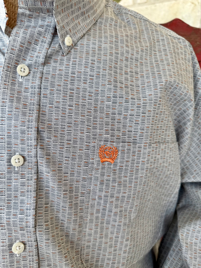 Men’s Cinch Button-Down Print Shirt – Gray/Orange – MTW1105961