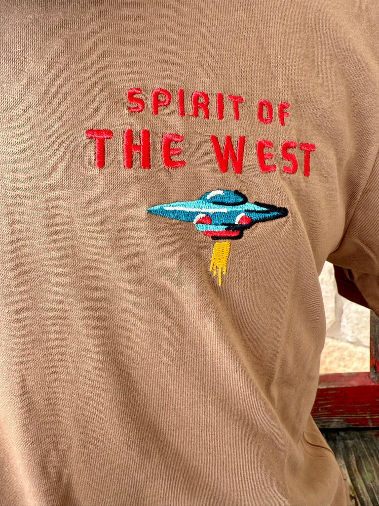 “Spirit of the West” embroidered front graphic with a turquoise UFO detail for a bold, standout look.