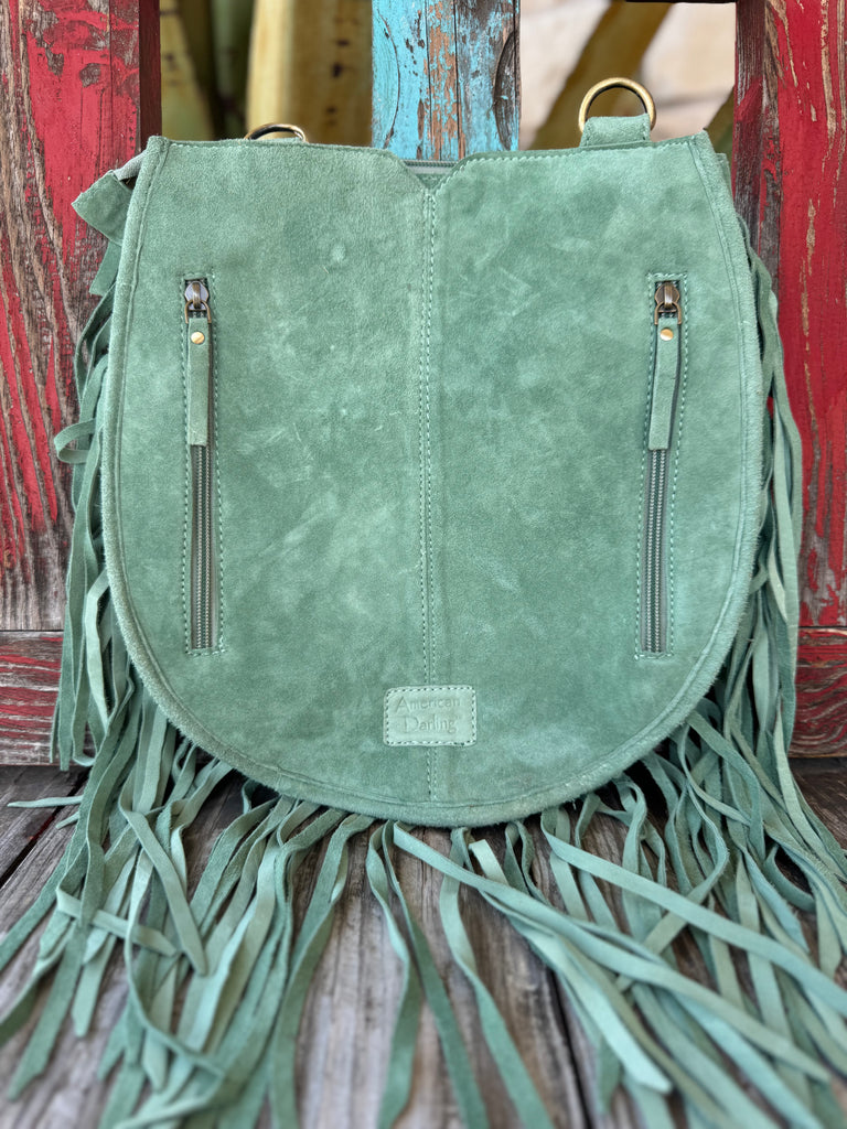 Women’s American Darling Fringe Whip Feather Purse – Sage Leather – ADBGA431D