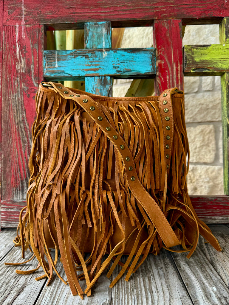 American Darling Crossbody Tan Fringe Leather Bag – ADBGM308A