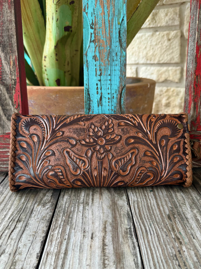 Women’s American Darling Wristlet Brown Tooled Leather Clutch – ADBG1106