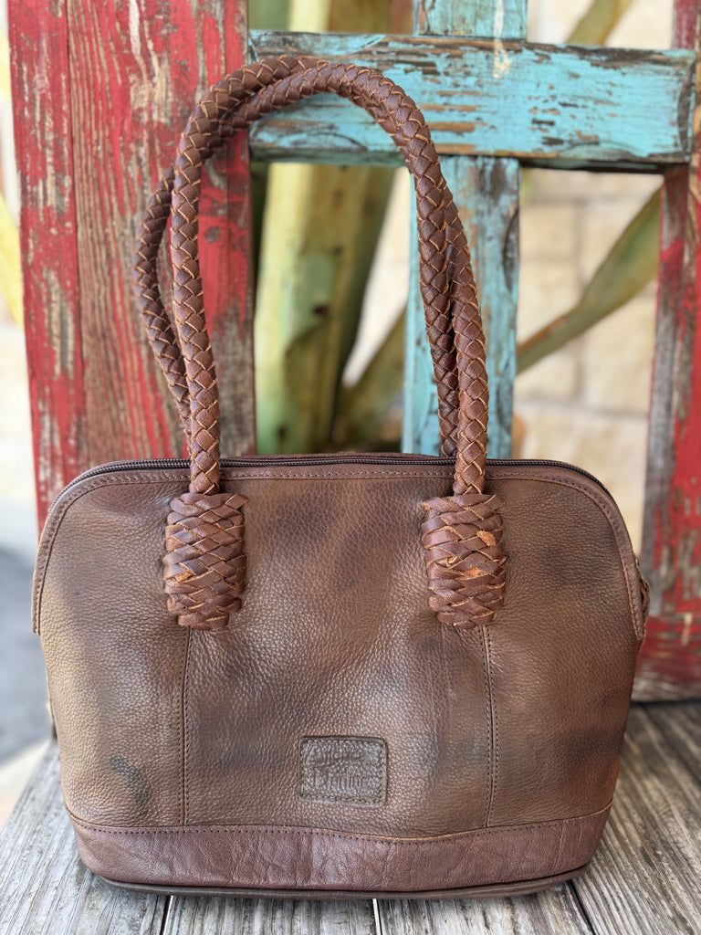 Ladies Cowhide and Leather Fringe Handbag – Brown & White – ADBGM333B
