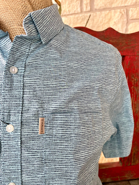 Men's Ariat Short Sleeve Button Down Shirt in Light Blue/Navy Print - 10054849